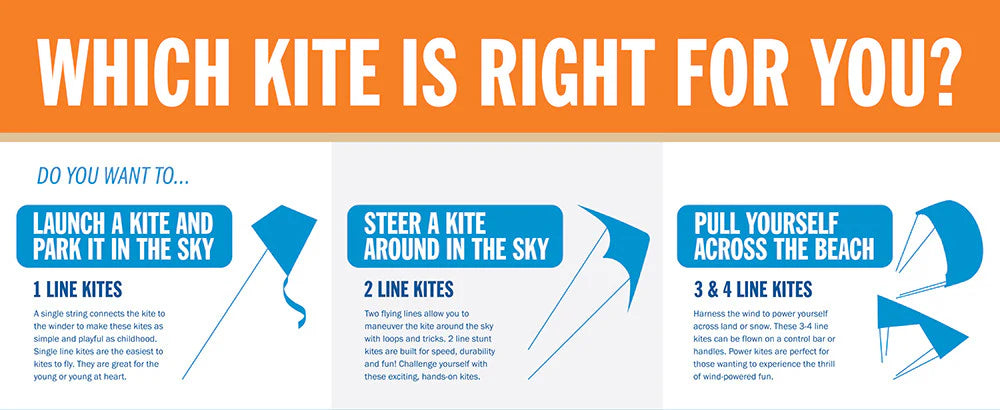 - Foil Dual-Line Stunt Kites - Dual-line foil kites create more pull and excitement and because they do not have a rigid frame. They also generally pack up into smaller cases, making them great for traveling. Pair these with a kite buggy and you can go for a wild ride!