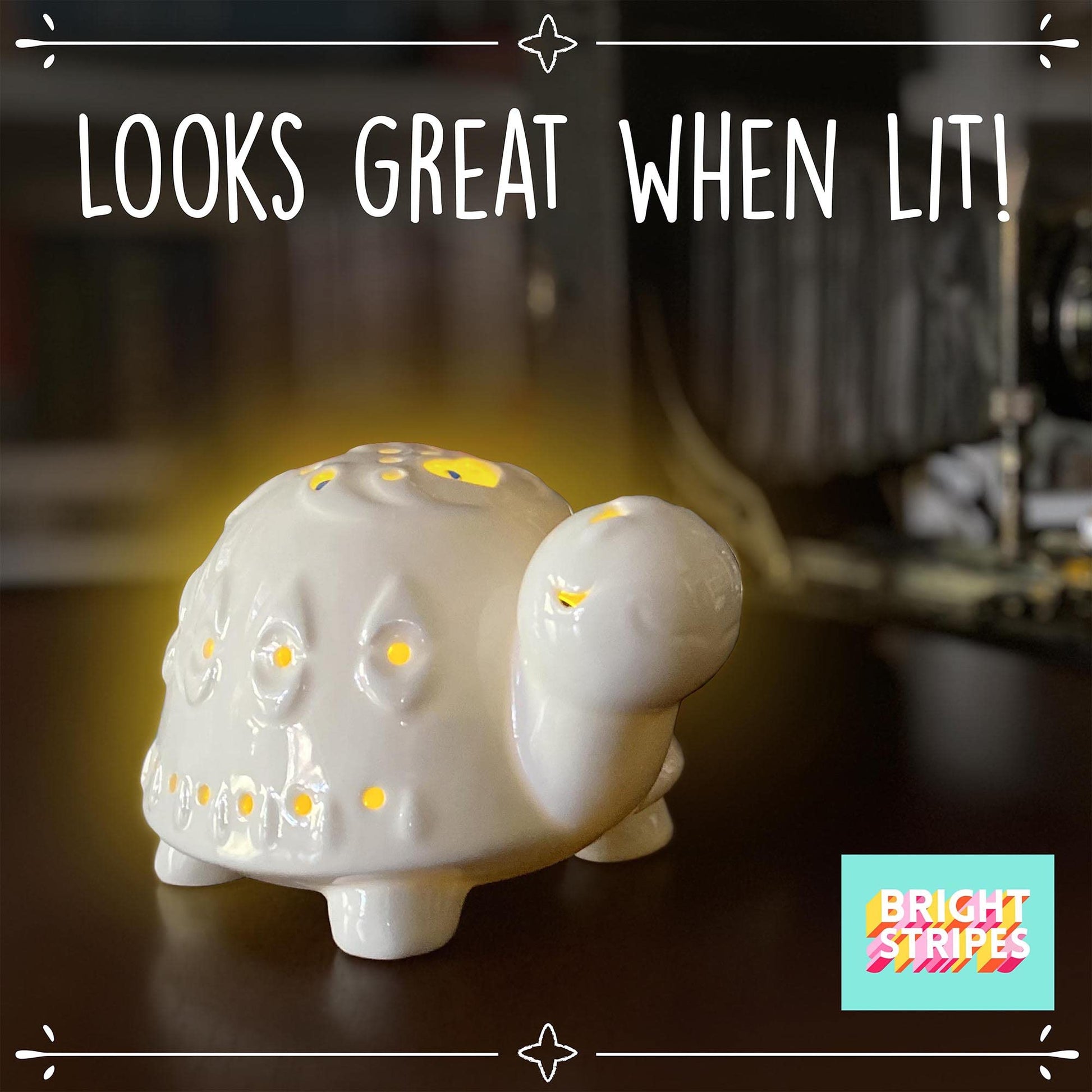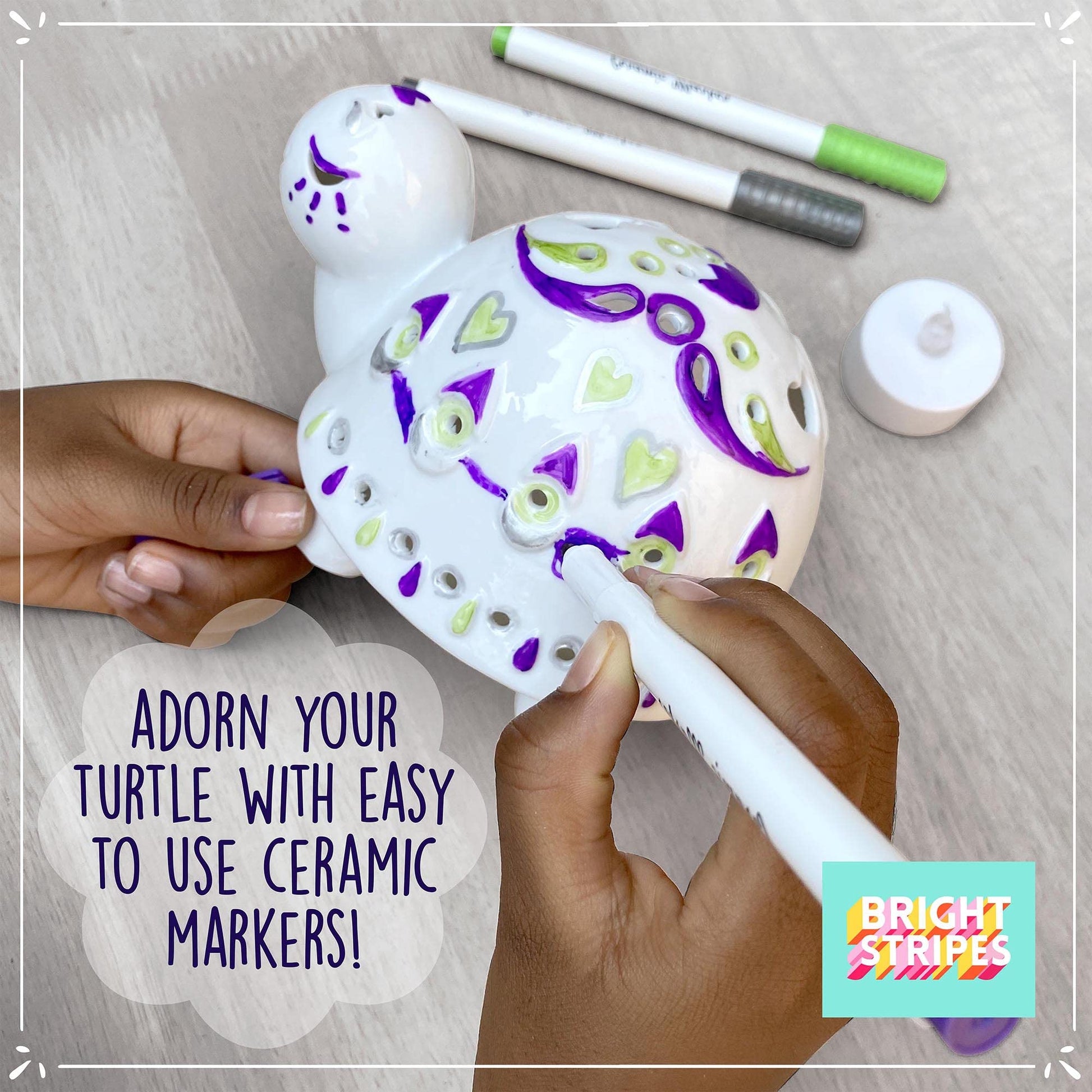 Bright Stripes Color Your Own Kids Craft Kit Paint Your Own Ceramic Animal Night Light, DIY Creativity Set Includes 3 Markers, LED Light and Instructions, Ideal Creative Gifts, Turtle