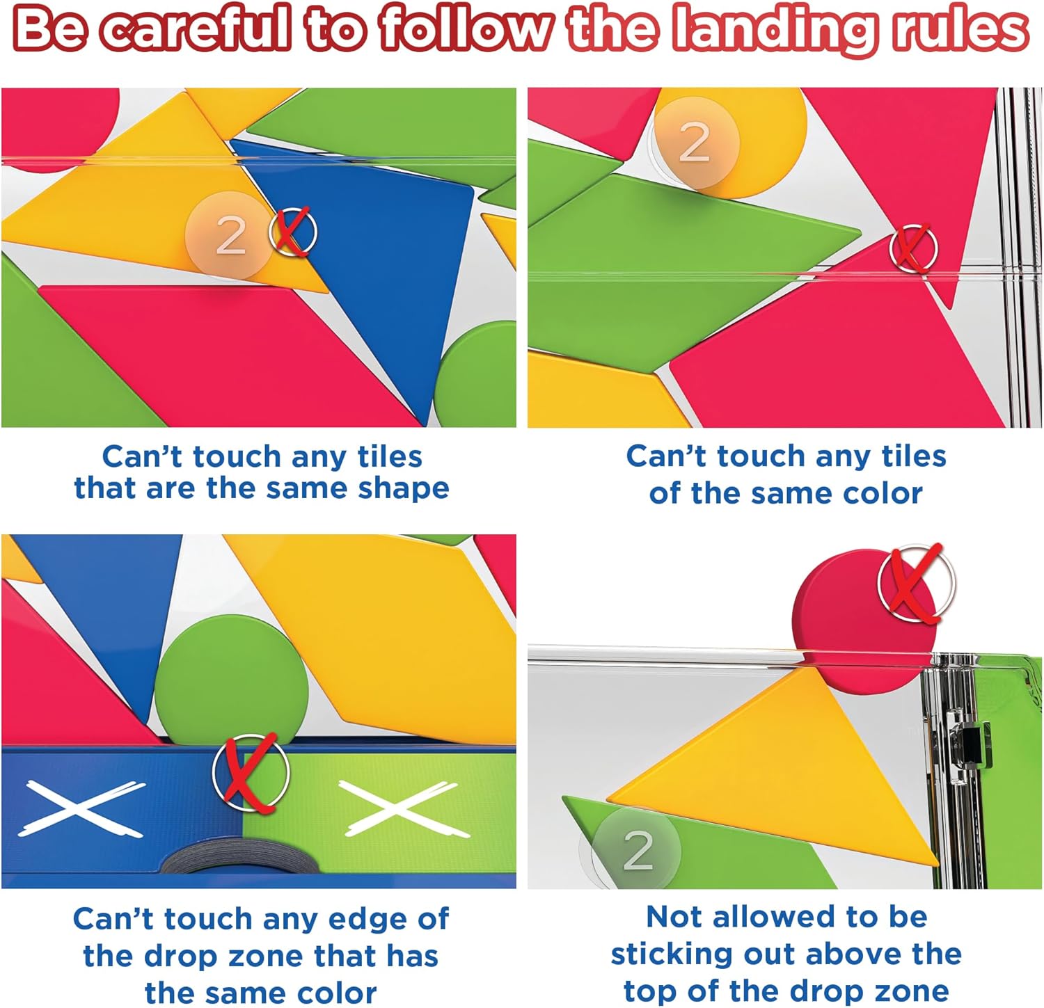 touch matching shapes or colors after it lands. If you break a landing rule,