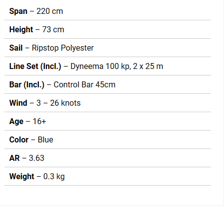 Includes 220lb x 82' Dyneema Kite Line
