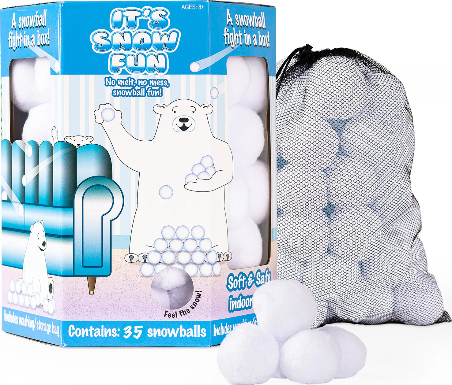 Live in a warm climate? Don't want to wait for snow? We got you! Soft snowballs have a realistic crinkly feel but are so lightweight you can use them indoors. Store in the included mesh bag between battles.
