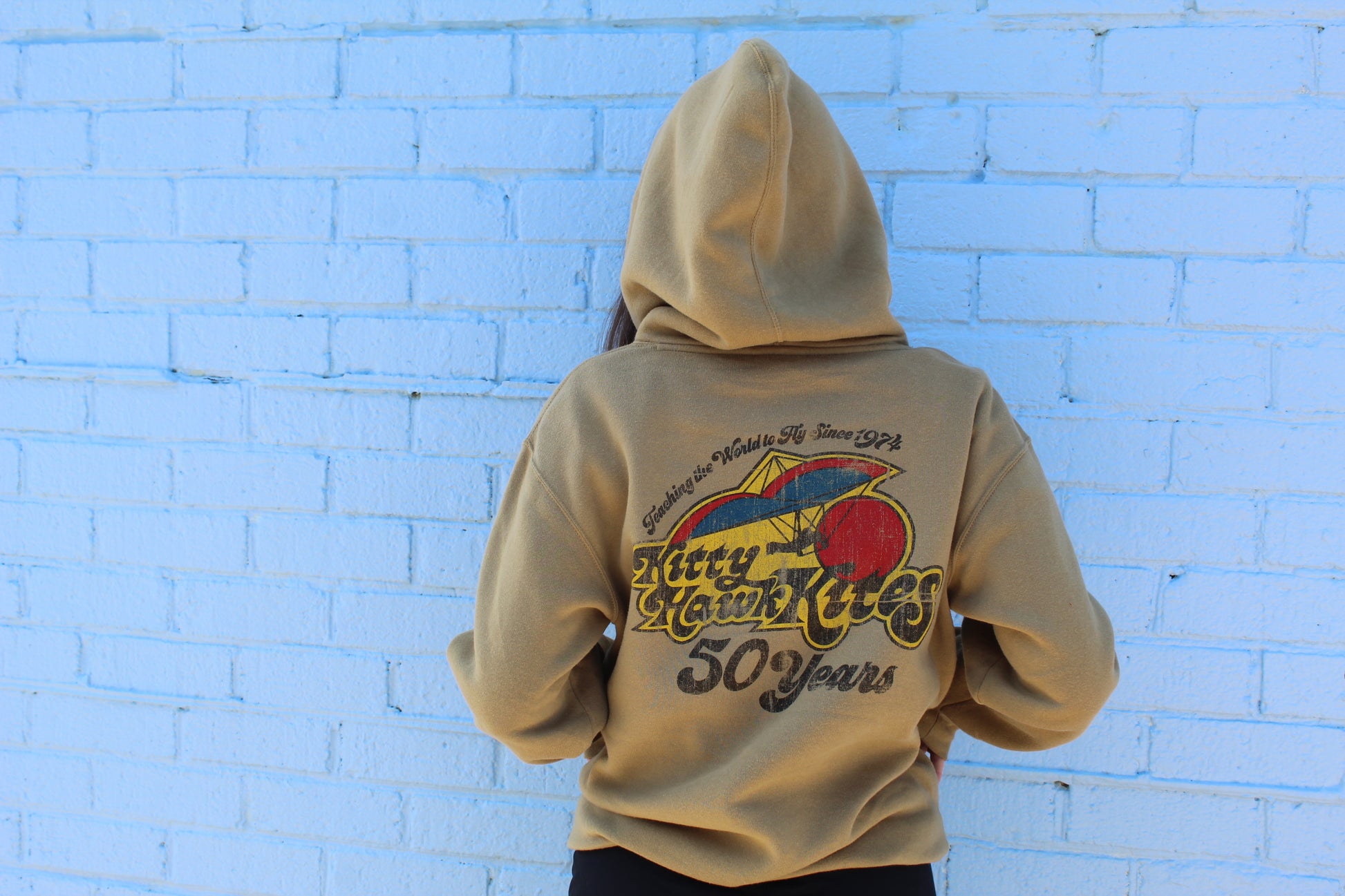 Celebrate 50 years of Kitty Hawk Kites with our 50th Anniversary Hoodie in Flint. A perfectly worn-in unisex design inspired by our classic KHK logo will help you celebrate our 50 years of teaching the world to fly!