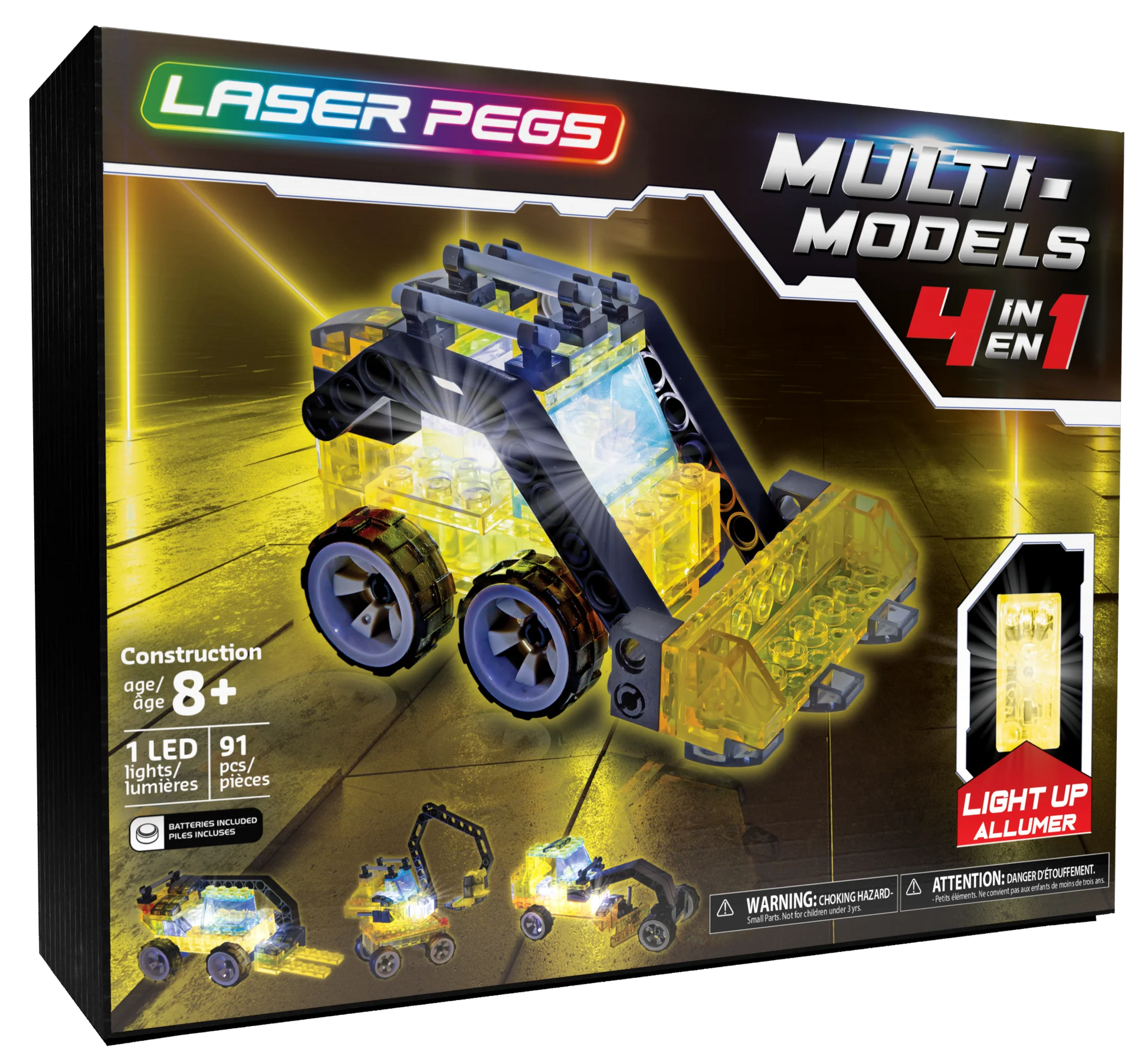 Dig, scrape, lift or dig some more with the ultra-versatile 4-in-1 Mini Construction light-up Laser Pegs MultiModel set. They may be mini, but they are mighty construction beasts that will have your kids building like crazy.