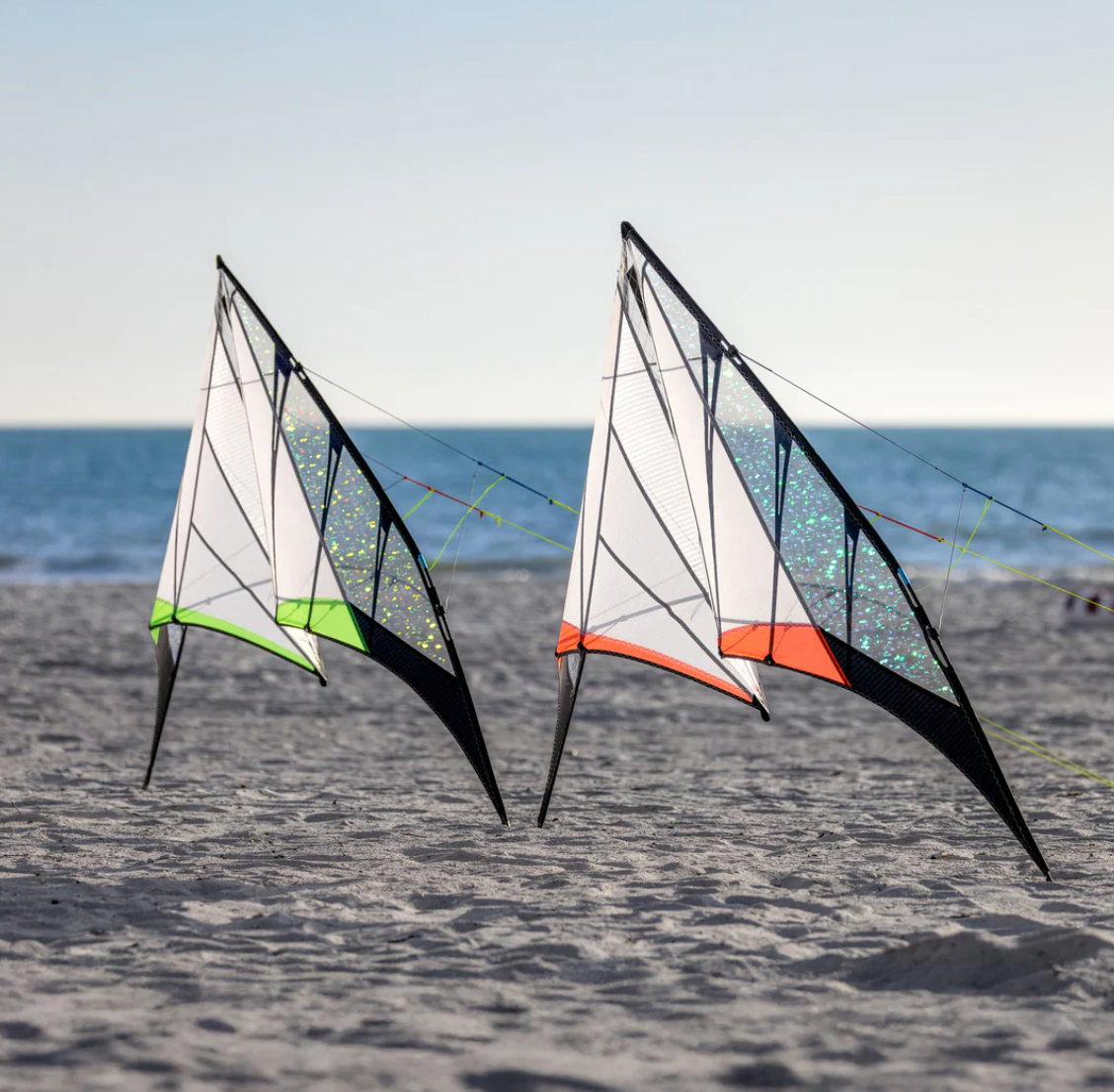 A refined light-wind performer for pilots who love precision and subtle control. Iridescent Prismatex panels catch the sun in shifting color, turning every flight into a stunning display of light in motion.