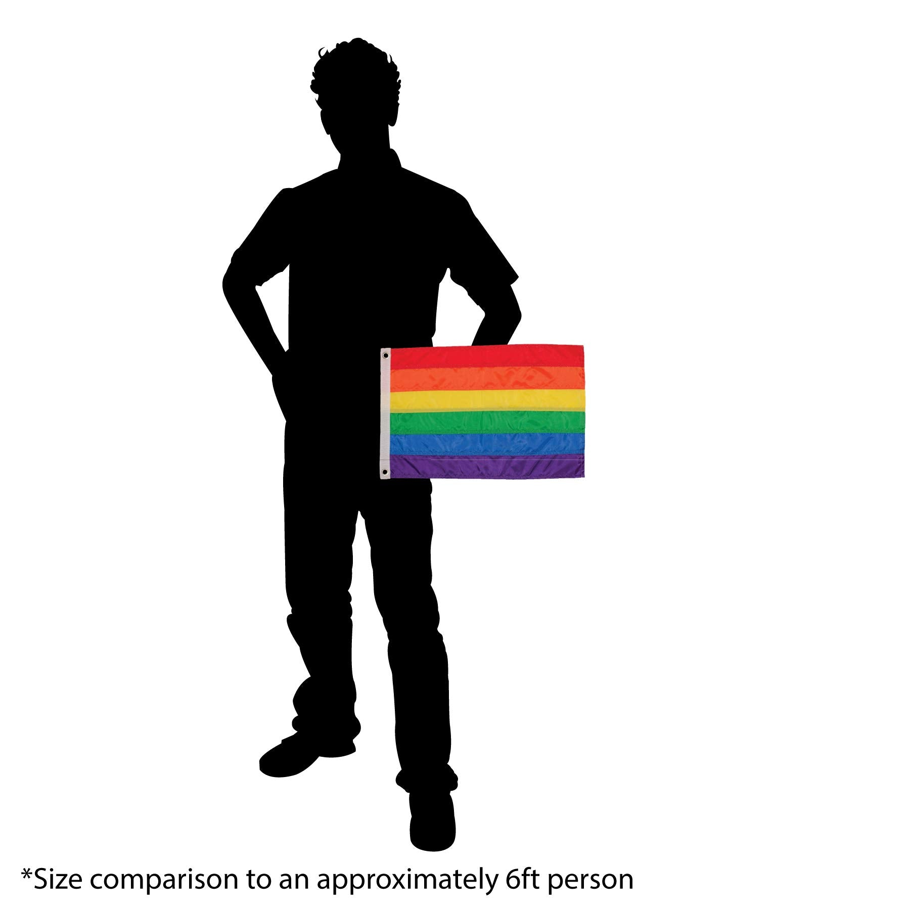 • This flag will make quite an impression when hung. You certainly won't miss this colorful rainbow flag!