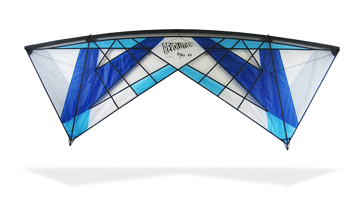 Revolution's Reflex XX Tarantula is a vented version of the XX. Venting allows for higher wind conditions up to 18 mph, while the "no screen" venting reduces weight allowing for lighter conditions, down to 3 mph. "No screen" venting also allows for faster reverse flying, smoother "Floats" and a lighter, more responsive touch!