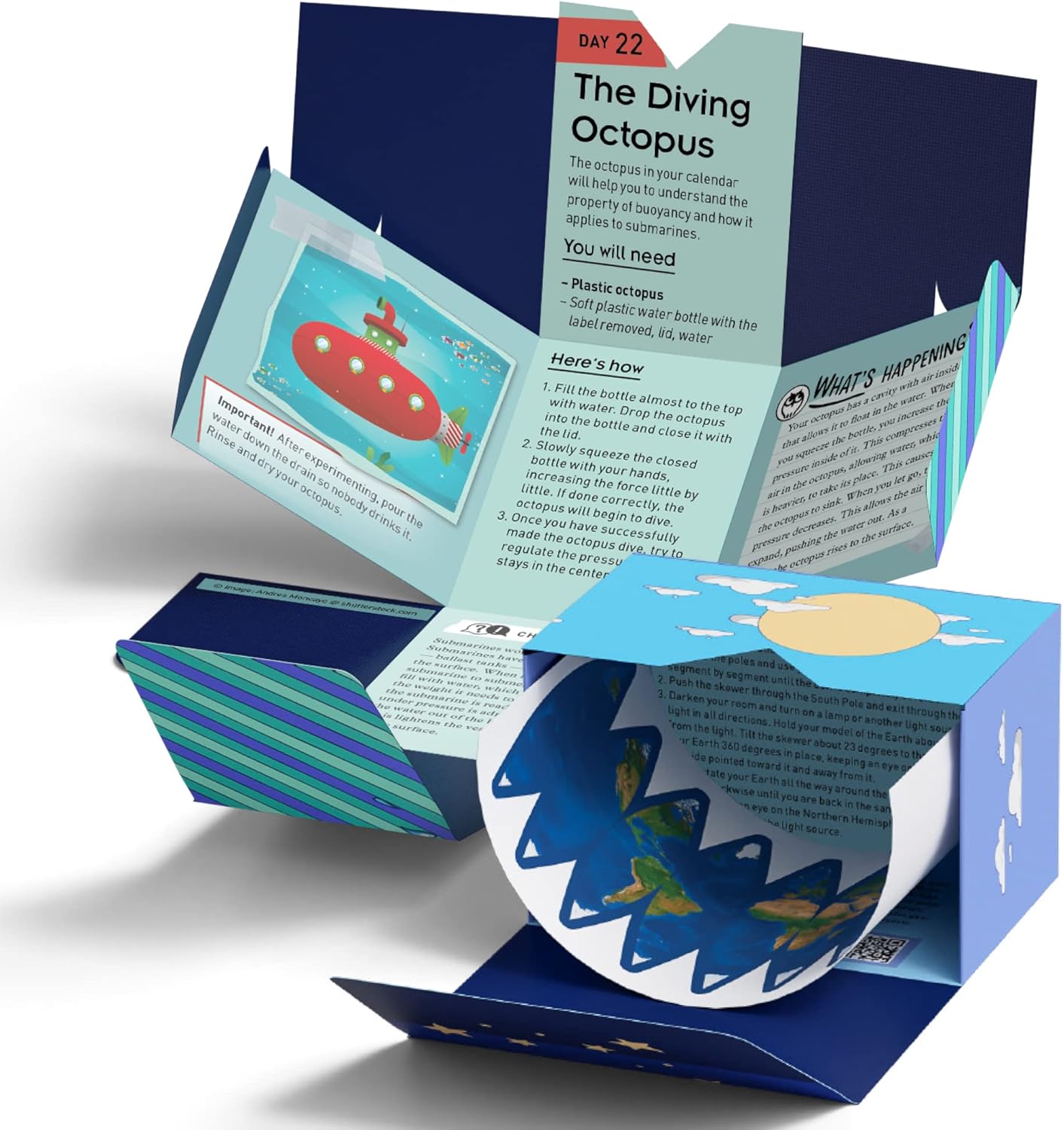 • This advent calendar includes 24 unique science experiments to do as kids count down the days to Christmas.
